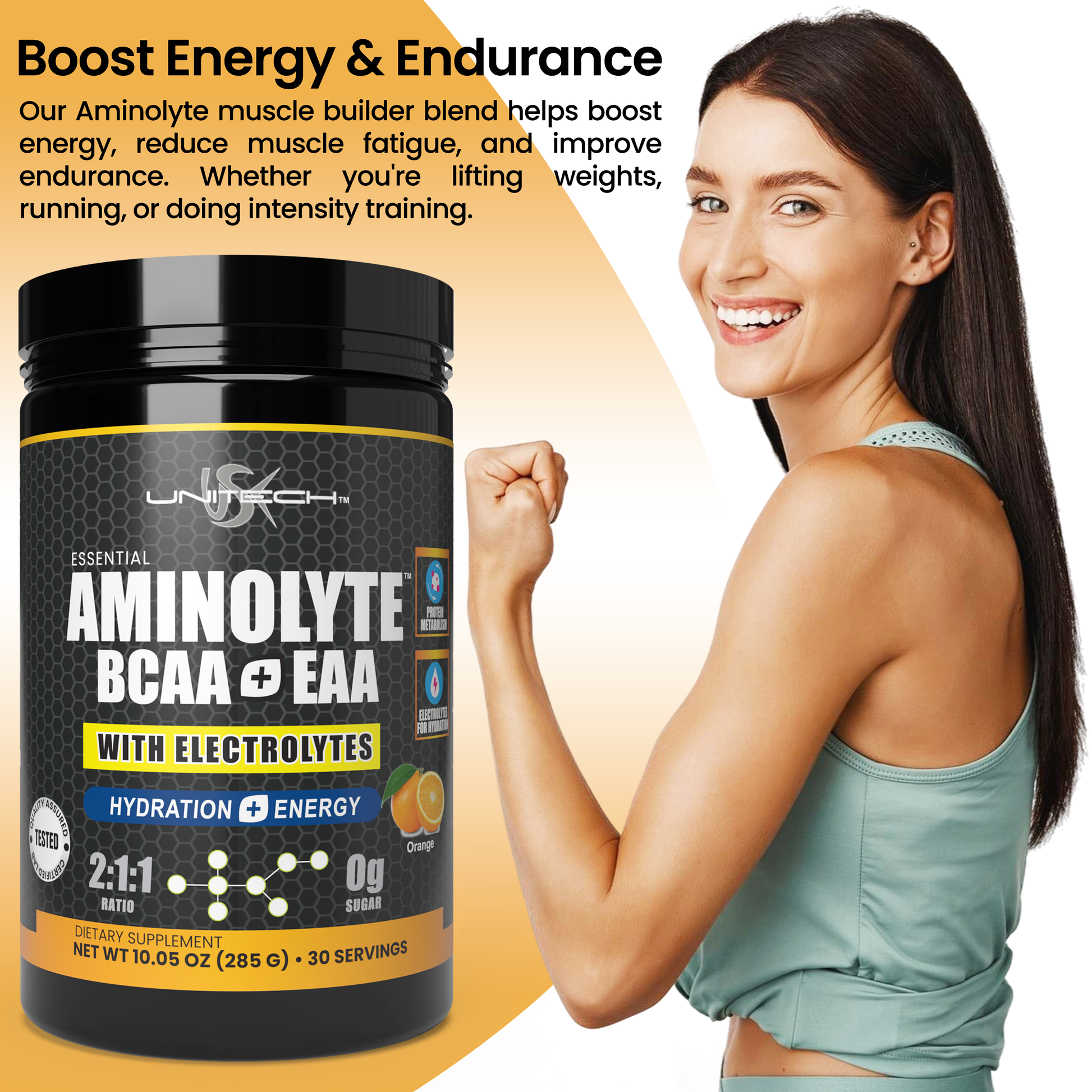 Power up your fitness journey with Unitech USK Essential Aminolyte BCAA + EAA amino acids supplement your ultimate hydration and recovery partner!