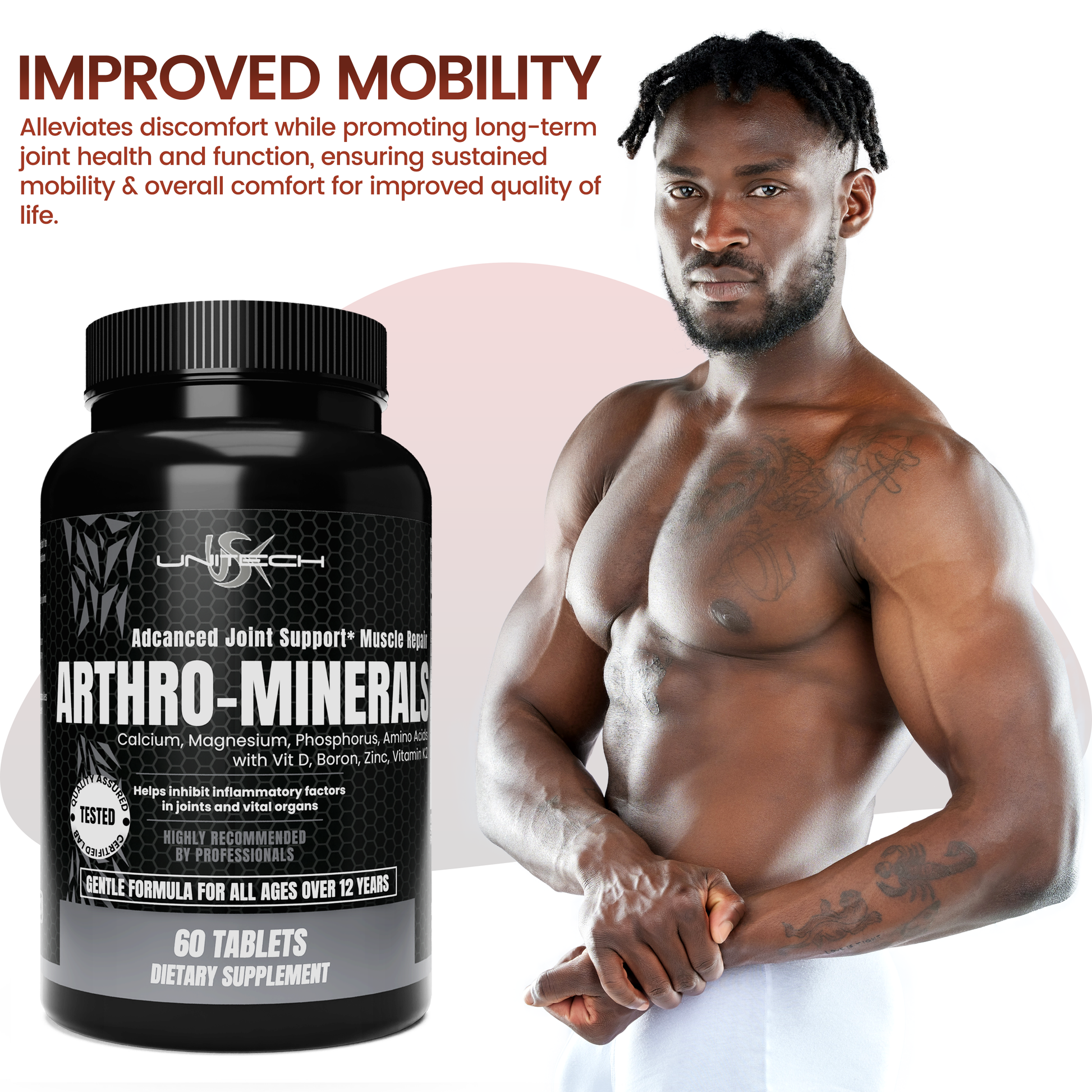 Unitech USK | Arthro Minerals | Supports Bone, Collagen & Muscle Repair | Rich with Calcium, Magnesium, Phosphorus, Zinc, Boron, Vitamin D & K2 | Joint Health Supplement | 60 Tablets