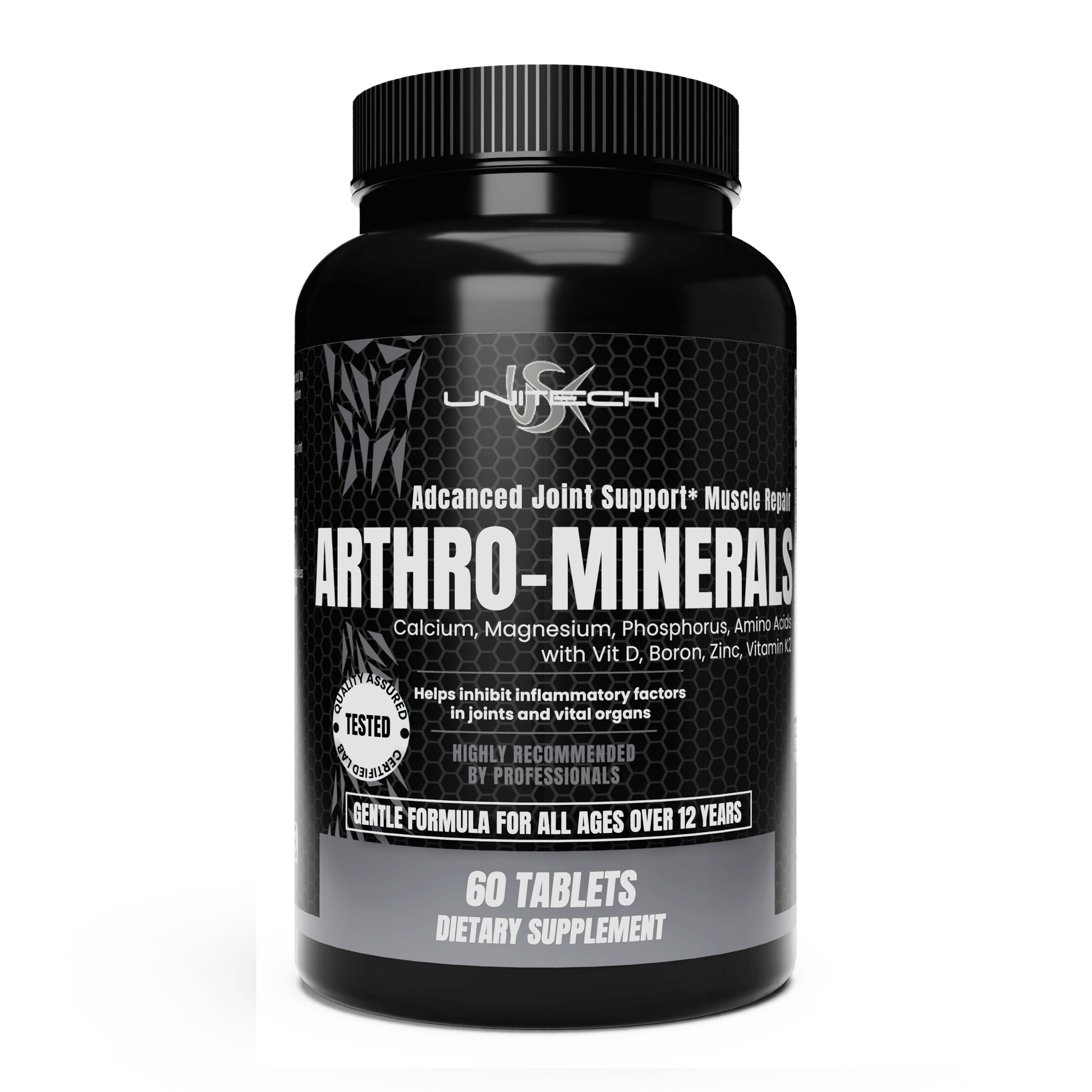 Each bottle of Arthro Minerals contains 60 tablets, providing a month’s supply when taken as directed. Bone supplement supports bone health and muscle function, contributing to overall vitality. Trust Unitech for a formula that supports your mobility and strength, helping you maintain an active and healthy lifestyle.