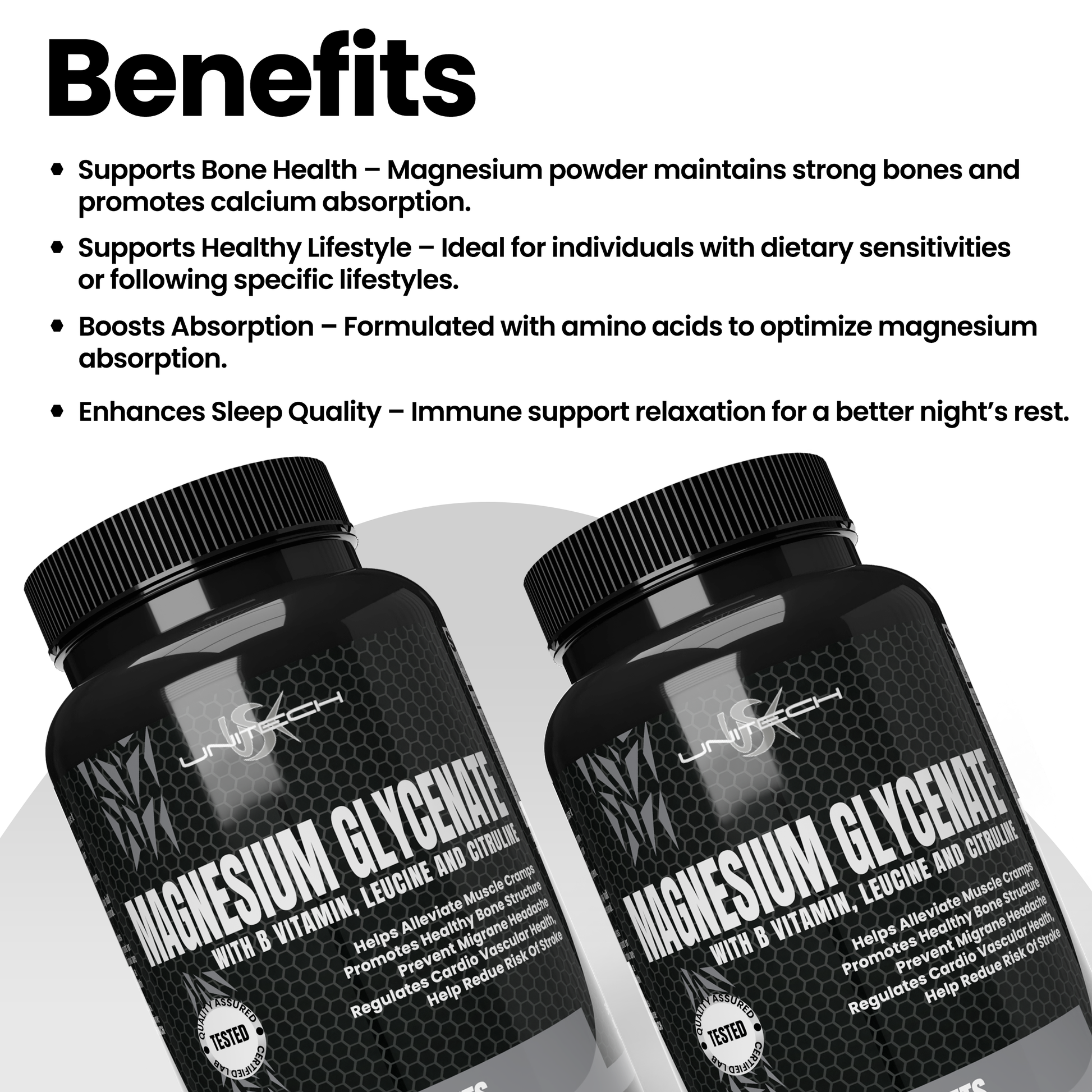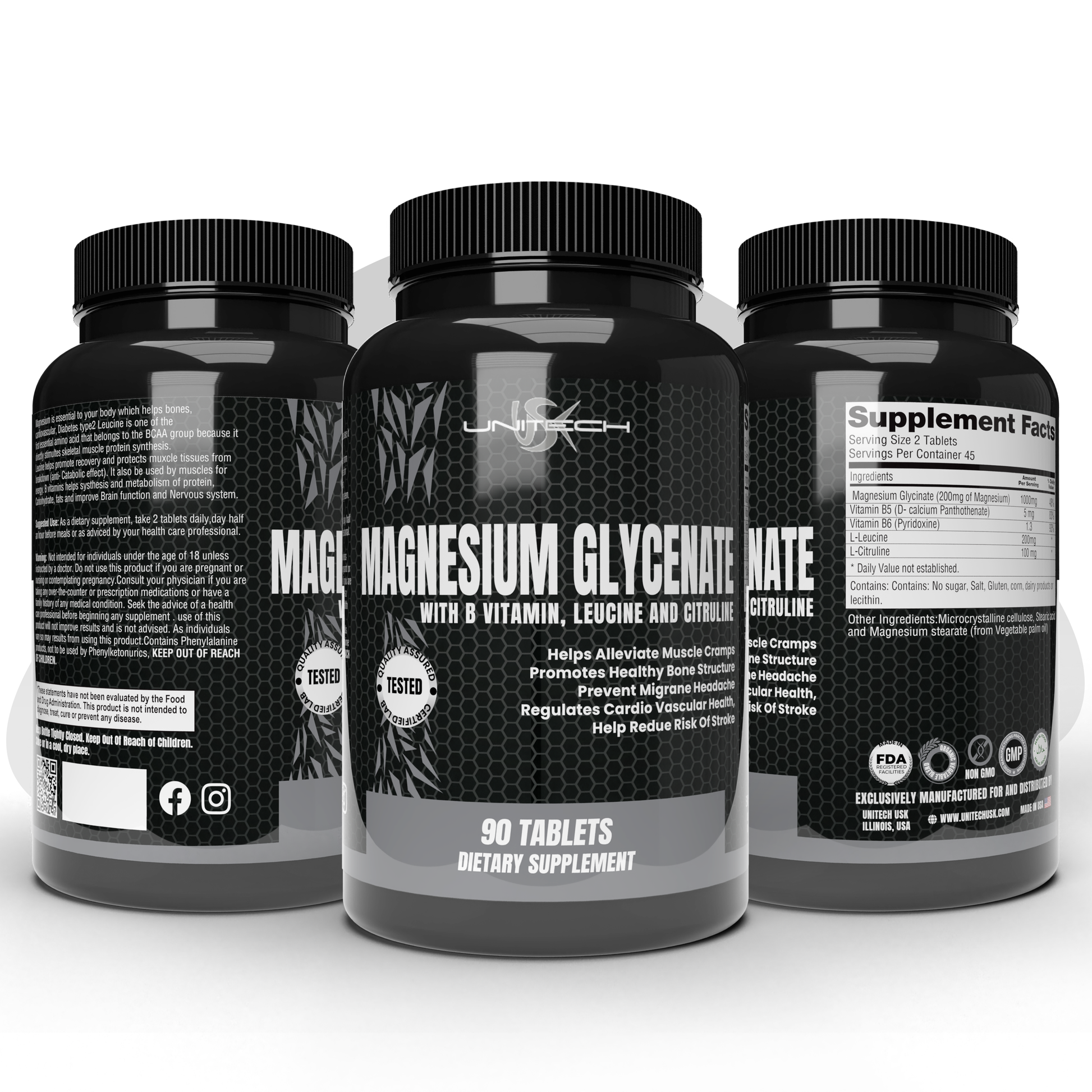 Unitech USK | Magnesium Glycinate Tablets | Immunity Support with B Vitamins, Leucine & Citrulline | Promotes Muscles, Bone Health & Supports Overall Wellness | Dietary Supplement | 90 Tablets