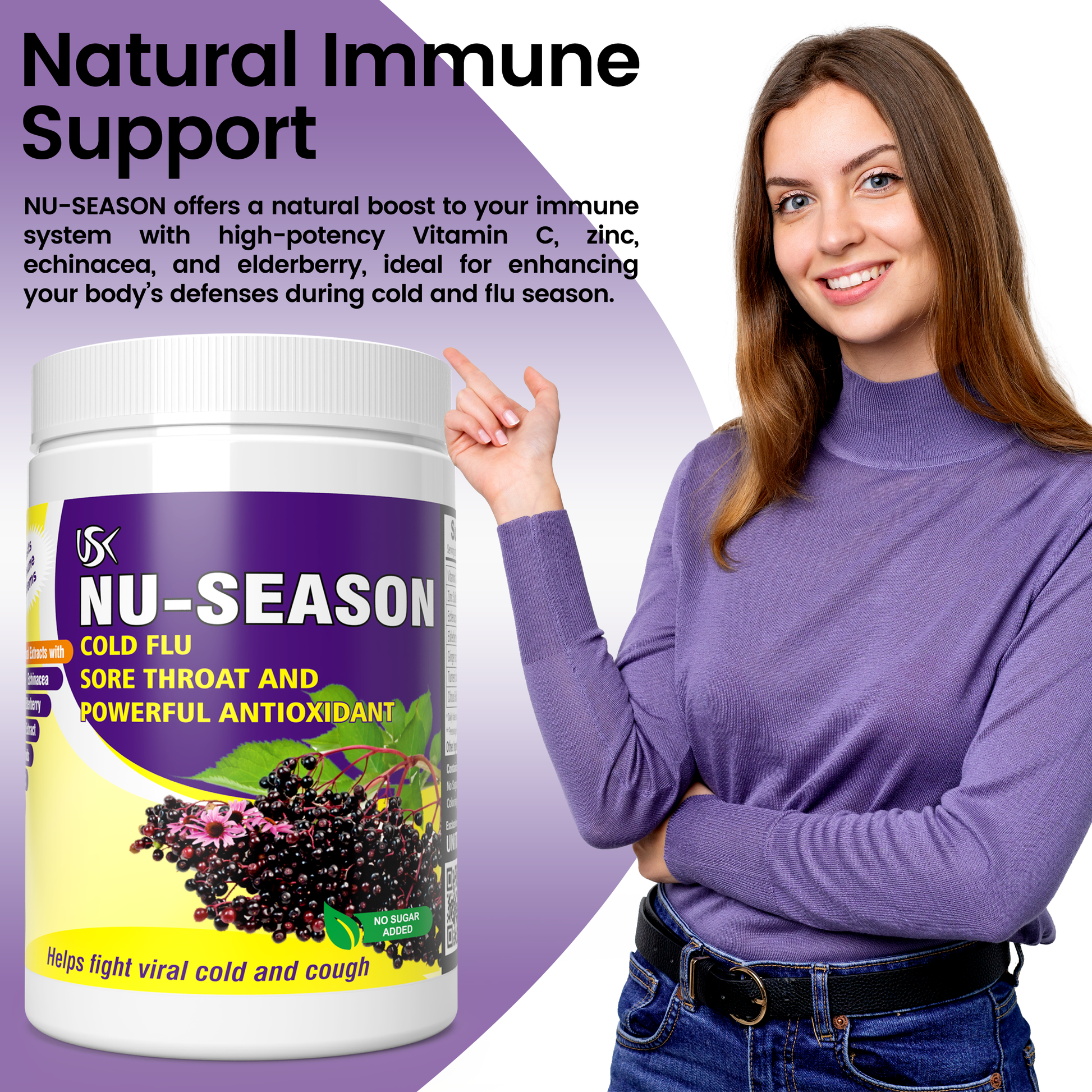 Unitech USK | NU-SEASON | Immune Support Supplement | Vitamin C, Zinc, Echinacea & Elderberry | Non-GMO, Vegan, Antioxidant-Rich Formula for Cold and Flu Relief | 100% Natural, Gluten-Free | 300 grams