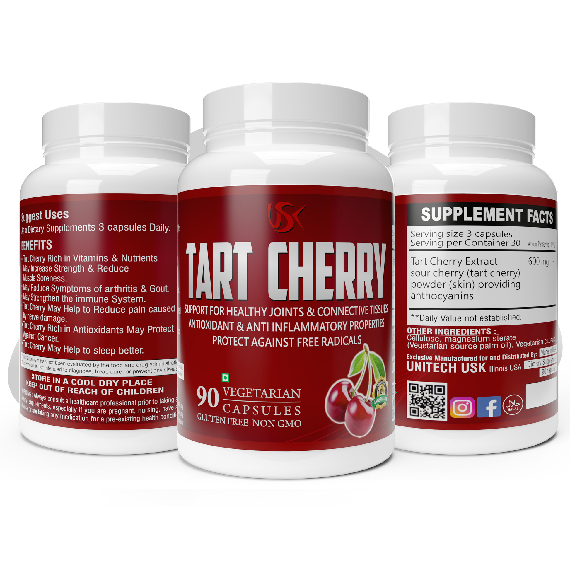 Unitech USK | Tart Cherry Capsules | Joint Support, Immune System Strength, & Muscle Recovery | Rich with Antioxidant, Tart Cherry, Cellulose, & Magnesium | Dietary Supplement | 90 Vegetarian Capsules